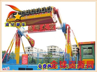 高空揽月也称遨游天空,它是很刺激的游艺设施,类似狂呼不过高度比狂呼低,并且有360度的翻滚动作。是十分刺激又好玩的大型游乐设备,它的运行方式也很独特游客并排坐背对背,两边的摆臂带动着座位上下360度旋转。